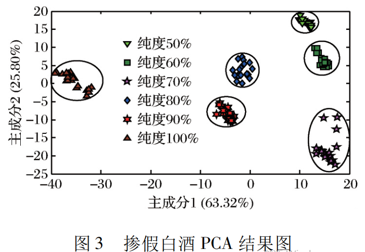 隨著食品質(zhì)量事件頻發(fā),食品安全問題已成為全球性關(guān)注的熱點(diǎn)。中國(guó)白酒具有悠久的歷史,是世界上著名的蒸餾酒之一,在人們生活中占據(jù)重要的地位,而近年來市場(chǎng)上各種白酒品質(zhì)參差不齊,其中不乏各種勾兌而成的摻假白酒。摻假白酒的制造及銷售嚴(yán)重?fù)p害了消費(fèi)者身體健康和財(cái)產(chǎn)安全。因此,構(gòu)建一種快捷、直接、可靠地辨別摻假白酒的方法具有重大的社會(huì)意義。