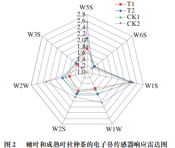2 基于電子鼻分析蒸汽爆破對嫩葉和熟葉杜仲茶的影響