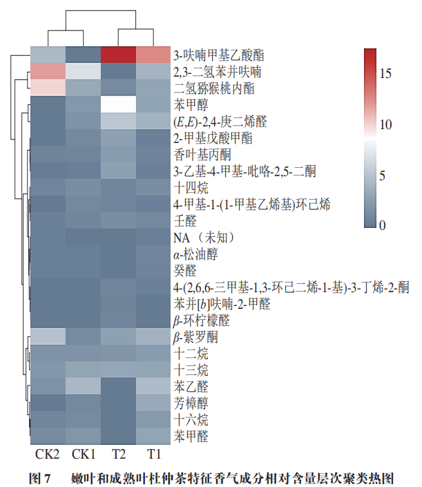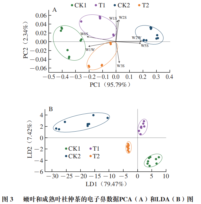 參考文獻:周昀菲,孫志強,杜慶鑫,等.基于電子鼻和HS-SPME-GC-MS分析蒸汽爆破對杜仲嫩葉和成熟葉茶香氣特征的影響[J].食品科學,2024,45(01):91-100.