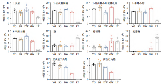 綜合分析,略燙后曬干品較其他市場主流加工品,土臭素、2-正戊基呋喃、2-異丙基-3-甲氧基吡嗪、1-辛烯-3-醇、3-辛烯-2-酮這5種“特異氣味”成分得到了較好地祛除或降低,丙位己內(nèi)酯、正戊基丁內(nèi)酯這2種內(nèi)酯類成分未被檢測(cè)到,萘、檸檬烯、麥芽酚這些具有芳香特性的揮發(fā)性成分得到了提升或保留。Heracles NEO超快速氣相電子鼻分析